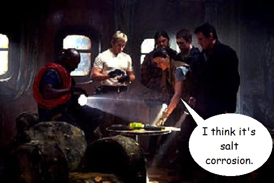 Now, the ship is dark, damp, and rusted. It creaks. It groans. And before you know it, Julianna thinks that she sees a little girl. Is she imagining things? Is the ship haunted? Is the movie called Ghost Ship?